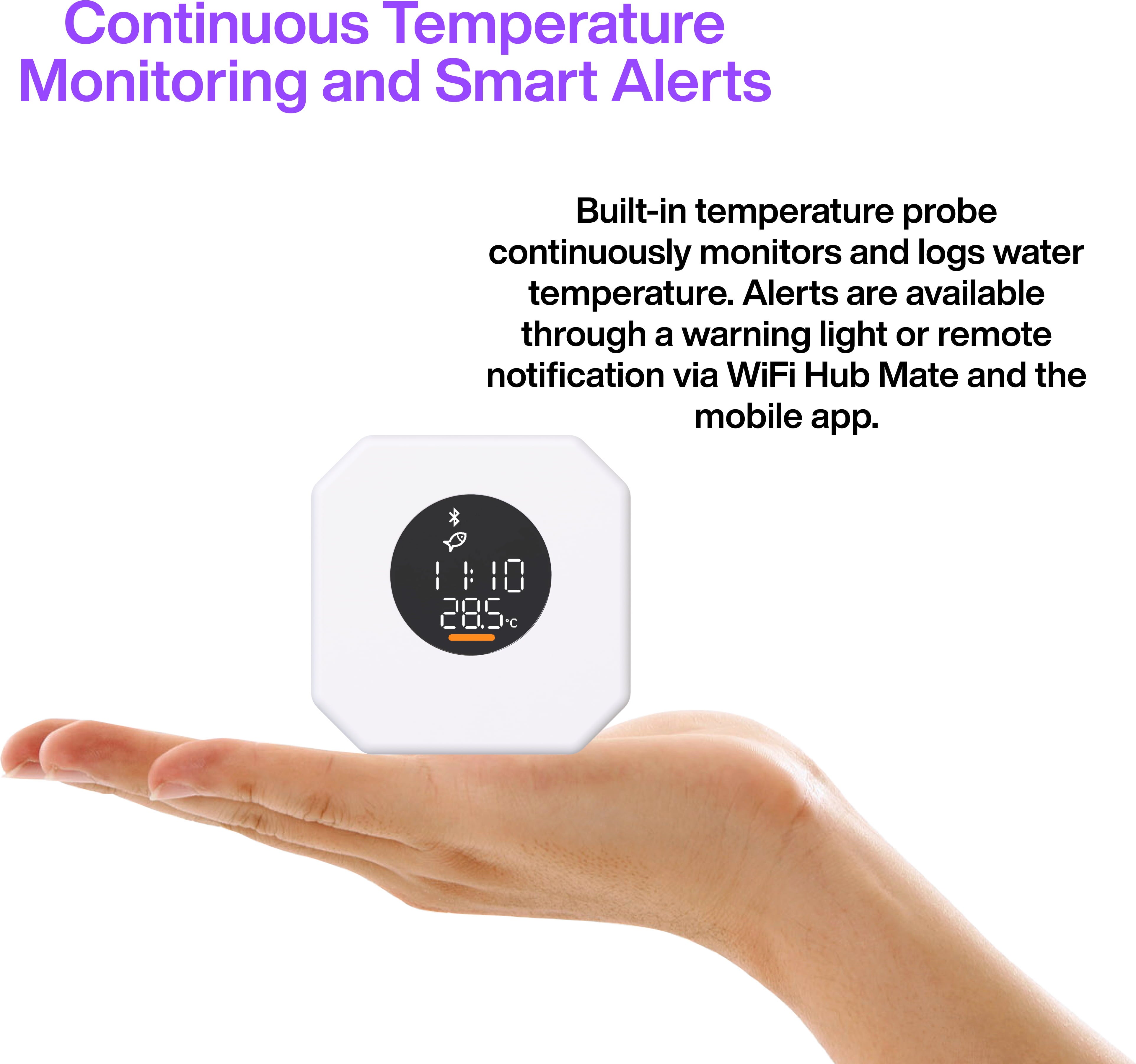 Avec le capteur intégré, vous gardez toujours un œil sur la température de votre aquarium. En temps réel, grâce au système de couleurs intuitif, vous pouvez vérifier à tout moment que tout est en ordre. La lumière verte, orange et clignotante verte vous indique l'état de la température dans votre aquarium – vous avez ainsi toujours la température idéale de l'eau sous contrôle !