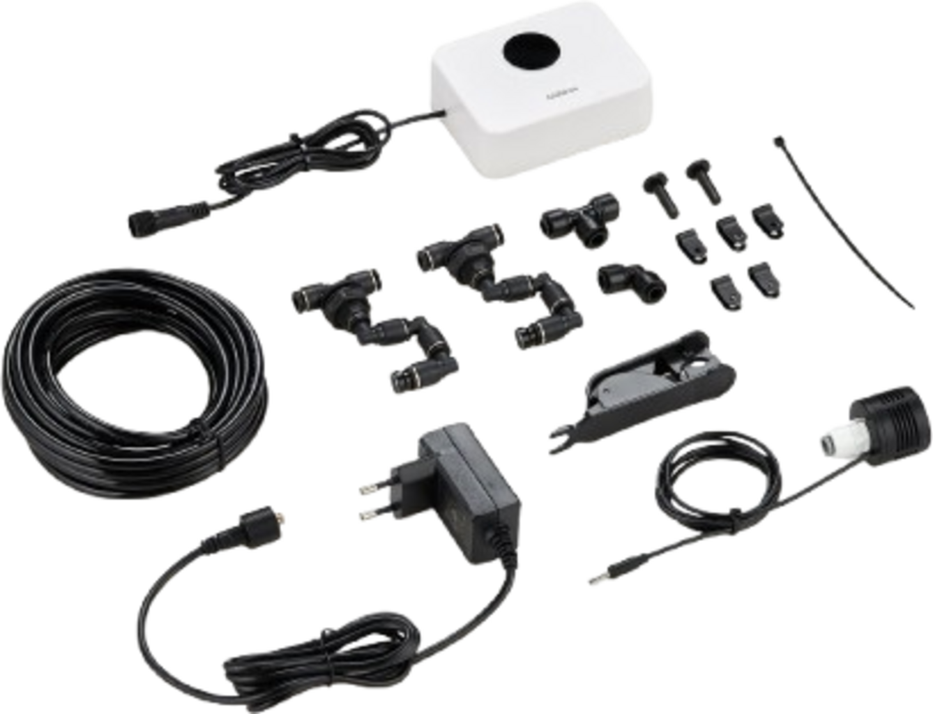 - Kit complet : avec tuyau de 5 m, coupe-tube, capteur de niveau et clips de fixation.