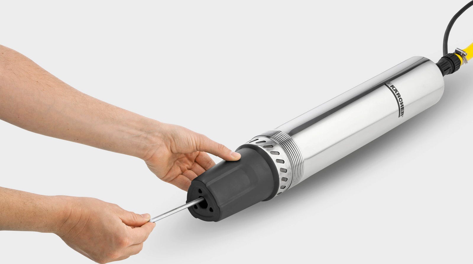 En tant que pompe pour puits profonds pour l'arrosage du jardin, le modèle convient à l'alimentation des pelouses, des parterres de plantes ou des systèmes d'irrigation automatique. En même temps, elle peut également être utilisée comme pompe pour puits profonds pour les systèmes d'alimentation en eau domestique afin de pomper les eaux souterraines et de les utiliser dans la maison comme eau de service, par exemple pour la chasse d'eau des toilettes ou la machine à laver. Le boîtier robuste en acier inoxydable protège la pompe lors d'un fonctionnement continu dans le puits. Un préfiltre intégré ainsi qu'un clapet anti-retour assurent un fonctionnement fiable lors du pompage de l'eau de puits, tandis que le pied d'espacement protège l'entrée d'eau des saletés.