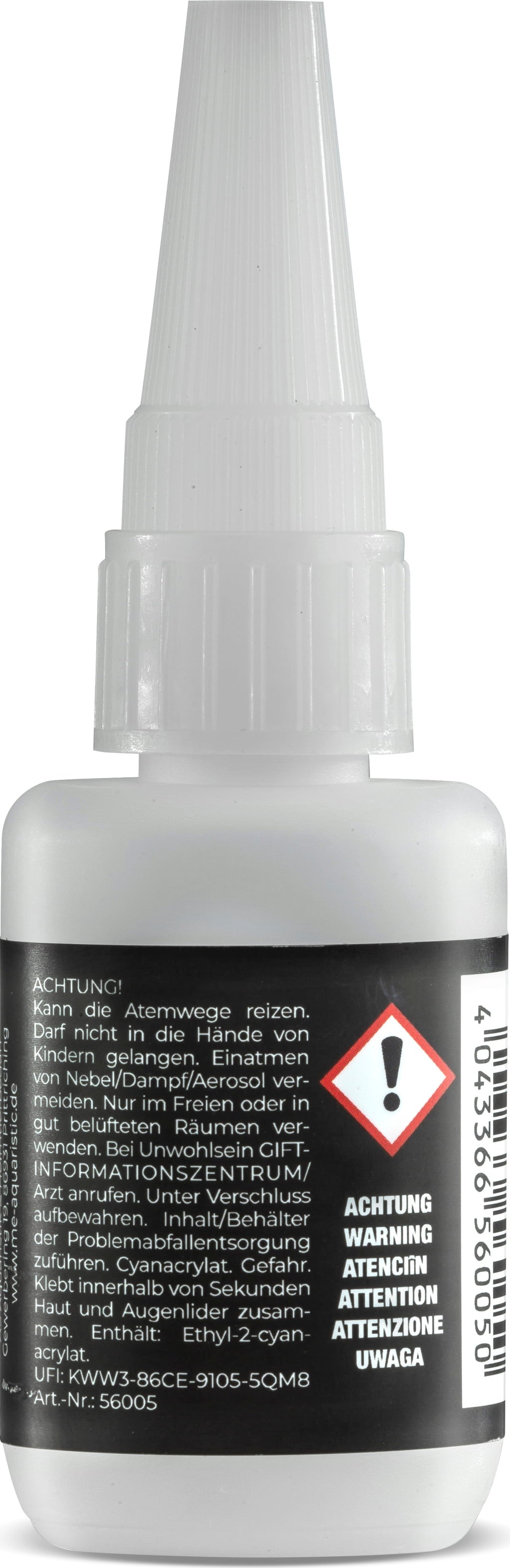 - EUH 202 - Cyanoacrylate. Danger. Colle à la peau et aux yeux en quelques secondes. À conserver hors de portée des enfants.